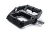 leichtes Flat-Pedal, Nylon-verstärkter-Kunststoff-Körper und CrMo Achse, angefaste Kanten für erhöhte Bodenfreiheit in Kurven, große Standfläche, extrem flache Bauweise, neun austauschbare und einstellbare Pins pro Seite, gedichtete IndustrielagerMaterial: Kunststoff
